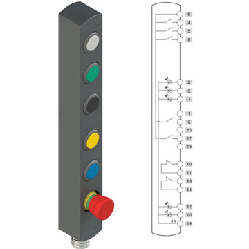 Position 6: 1 red emergency stop button, turn to release, 2NC