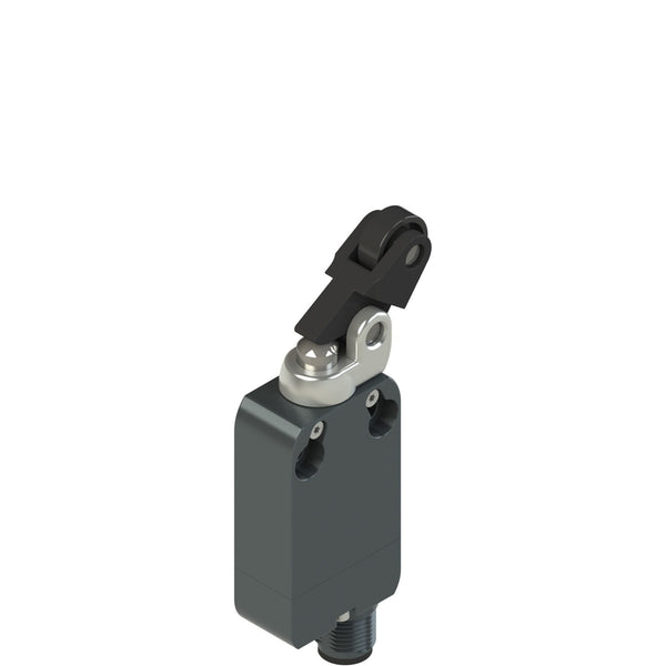 The NA B110CH-SMK Modular Prewired Switch with an offset roller lever is designed for reliable actuation in industrial environments. Featuring a metal housing with IP67 and IP69K protection, it offers resistance to dust, moisture, and high-pressure cleaning. The switch includes a 1NO+1NC contact block and prewired PVC cable for easy installation.