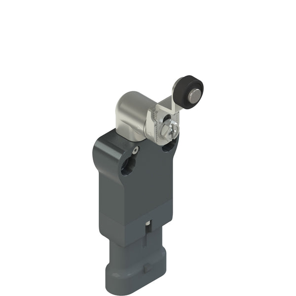The NB B112KD-SAK Modular Prewired Switch features an adjustable shaped metal revolving lever with a 14mm diameter roller, providing precise and reliable actuation. Its durable metal housing with 25mm fixing points ensures secure installation. The switch includes a 5-pole metal M12 connector for easy electrical connections. Built for robust performance, it is ideal for demanding industrial environments