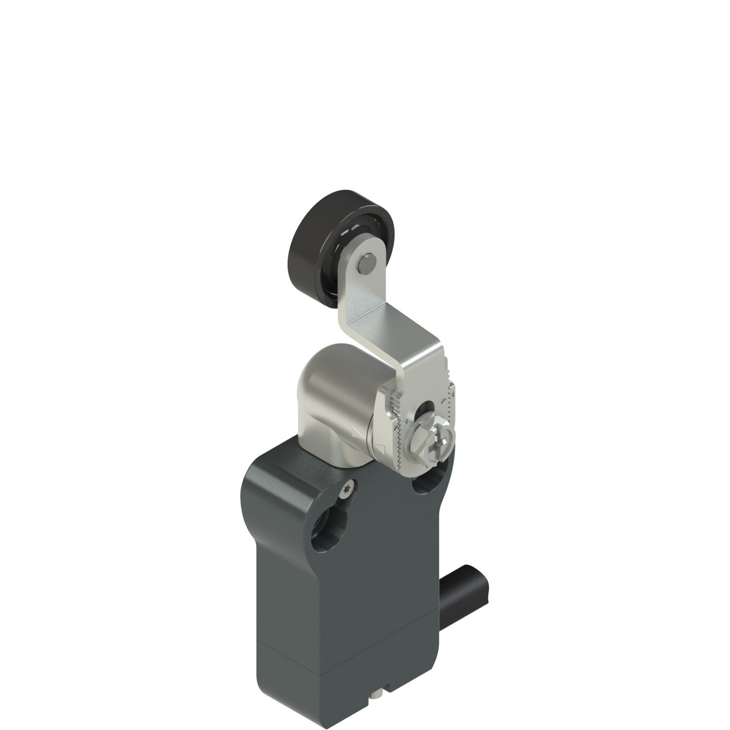 The NB B112KE-DN2 Modular Prewired Switch features an adjustable shaped metal revolving lever with a 20mm diameter roller, providing accurate and reliable actuation. Its robust metal housing includes 25mm fixing points for secure installation. The switch is equipped with a 5-pole metal M12 connector for easy wiring, making it well-suited for demanding industrial environments that require durability, performance, and precision