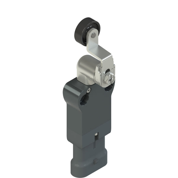 The NB B112KE-SAK Modular Prewired Switch features an adjustable shaped metal revolving lever with a 20mm diameter roller for precise and reliable actuation. It is housed in a durable metal casing with 25mm fixing points for secure installation. The switch includes a 5-pole metal M12 connector for easy wiring, making it ideal for demanding industrial applications that require robustness, accuracy, and dependable performance.