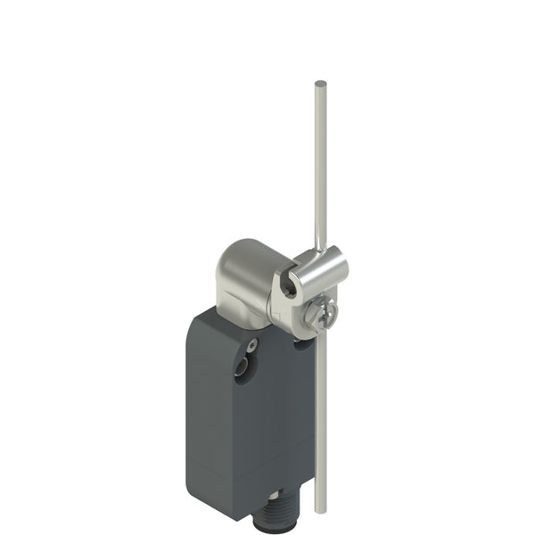The NF B112LE-SMK is a modular prewired switch featuring a metal revolving lever and an adjustable stainless steel rod (3mm diameter, 125mm length). This design offers precise activation and flexibility, making it suitable for a wide range of industrial and commercial applications. The adjustable rod allows for customized positioning, while the modular construction simplifies installation, reduces wiring complexity, and ensures reliable performance in demanding environments