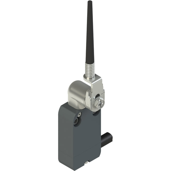 The NF B112LL-DN2 is a modular prewired switch featuring a metal revolving lever with a flexible adjustable rod. This design offers precise activation and flexibility, making it suitable for a wide range of industrial and commercial applications. The adjustable rod ensures versatility for different setups. Its modular construction simplifies installation, reduces wiring complexity, and ensures reliable performance in demanding environments.