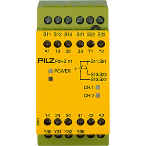 Safety relay (standalone), inputs: Per pushbutton 1 N/O, 1 N/C, outputs: 3 N/O, 1 N/C, 2 SC, UB = 110 V AC, width: 45 mm, screwterminals integrated, two-hand control relay, simultaneity monitoring with two-hand pushbutton.