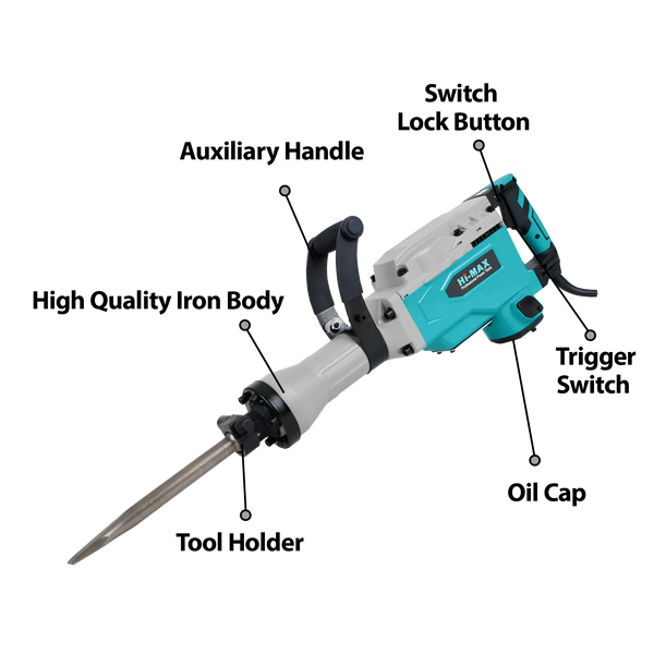 Starting the search for a reasonable and viable demolition hammer for extreme tasks? HI-MAX IC–065A with a diameter of Hex 30 mm for the chisel and convenience in performing activities. The device gives us a load-free pace of 1200 RPM for steady and dependable outcomes. The imposing electric motor with a current flow of 1400-watts makes the crumbling and hammering of hard materials effective. The demolition hammer is proper for the execution of modern evaluation jobs; as it consolidates etch pieces to lead to confounded workmanship work.