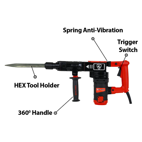 512 Demolition Hammer. Built to tackle the toughest demolition jobs, this tool combines remarkable features and cutting-edge technology to make your work smoother and more effective. The 512 Demolition Hammer boasts an impressive power output that translates into high-impact performance. With its advanced motor and engineering, it delivers a crushing force that effortlessly breaks through concrete, masonry, and other stubborn materials. This exceptional performance not only speeds up your work but also minimizes downtime. This powerful tool offers an array of features that ensure efficiency, precision, and durability, making it an indispensable asset for professionals in the construction and demolition industry.