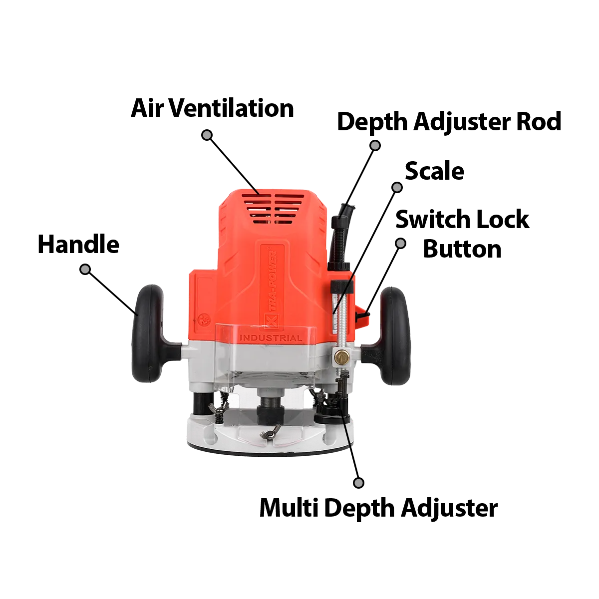 Description Purchase a highly dependable multifunctional electric router for your industrial needs. Xtra-power offers a dependable electric router for carving designs and shapes on an object or reconstructing it. Came up with an advanced design that follows all safety standards. The tool is efficient in wood processing, furniture manufacturing, and other creative industries. The applications of the Electric Router include grooving, chamfering, surface finishing and pattern processing operations. Enabled with a depth adjuster rod, you can adjust the depth based on the project and requirements.