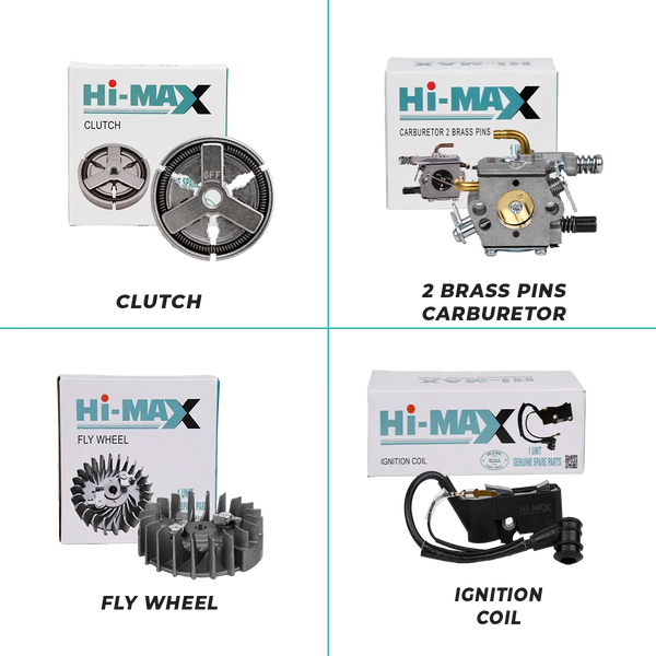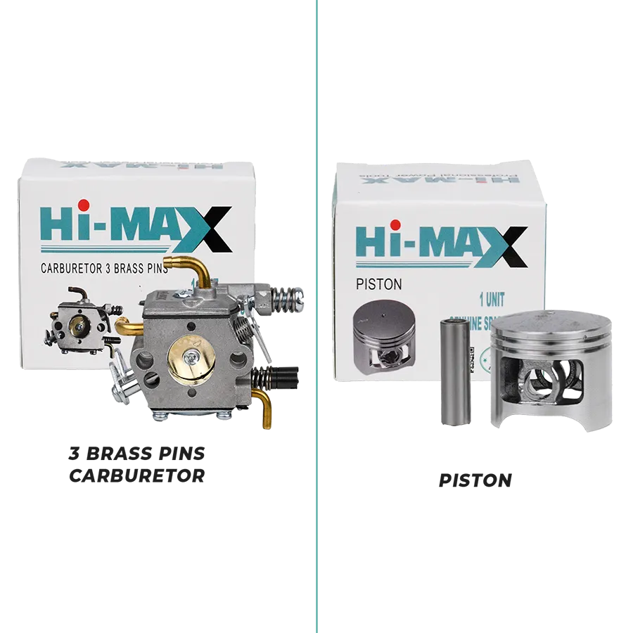 HI-MAX has an extensive range of chain saw machine spare parts (MSP) designed to enhance the performance and durability of your equipment. Our collection features high-quality cylinder kits that rejuvenate engine power, resilient sprockets for smooth chain operation, dependable ignition coils for consistent start-ups, efficient carburetors for optimal fuel delivery, and sturdy oil pumps for effective lubrication. Each component is engineered precisely to meet specifications, ensuring perfect fitment and reliable performance in even the most demanding environments. Whether you manage a large fleet or use your chain saw occasionally, our MSP range offers the superior quality and longevity you need for every task.