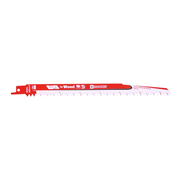 Xtra Power Reciprocating Saw Blade for Wood is perfect for all your woodworking needs. Made from high-carbon steel, this blade offers exceptional strength, longevity, and optimal design for fast, clean, and smooth cuts through various types of wood, including softwood, hardwood, and even wood with nails. It is ideal for trimming, pruning, and cutting. It ensures clean and accurate cuts with sharp, precise ground teeth, reduces splintering, and provides a professional finish on every project. The user-friendly S-shank design allows quick and easy installation, while the flexible body offers effortless manoeuvrability, even in tight spaces.