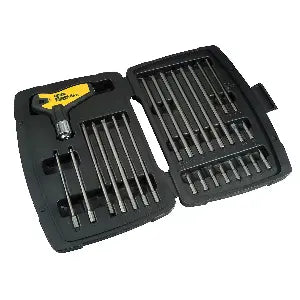 The STANLEY T-handle driver ratchet set is a handy toolset designed to provide versatility and convenience for various fastening and loosening tasks. This set typically includes T-handle drivers with ratcheting mechanisms, allowing for quick and efficient operation in tight spaces or when applying torque.