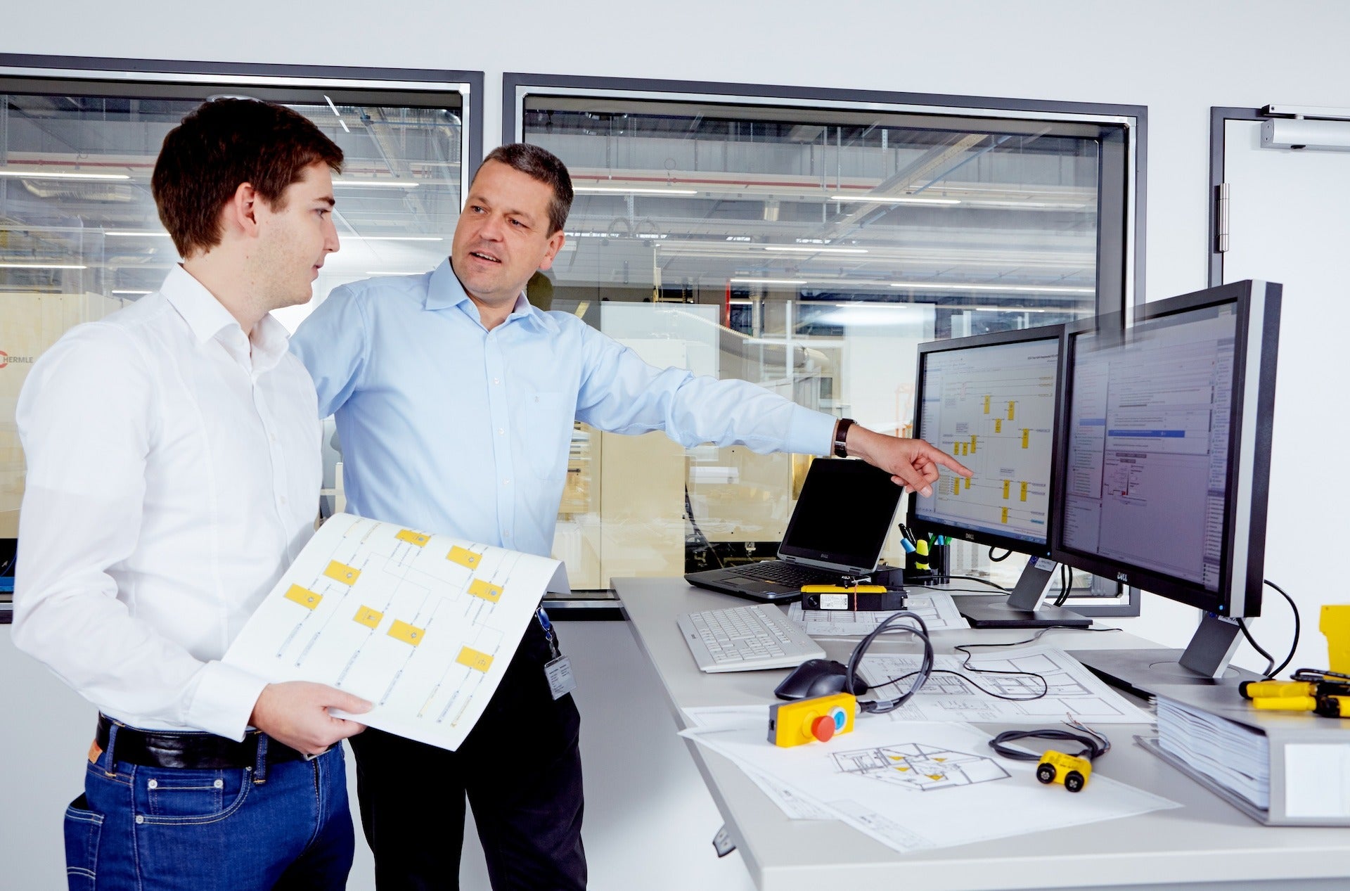 Based on the safety concept, safety experts from SICK create detailed specifications of the safety-related application software (SRASW) as well as the configurable and parameterizable safety components. This not only prevents programming errors and ensures safe and reliable application software, but also compliance with normative requirements. Based on the specifications, the safety controller is then programmed and interfaces to the machine process control are prepared. A final code review ensures that an error-free program is available for later commissioning of the machine.