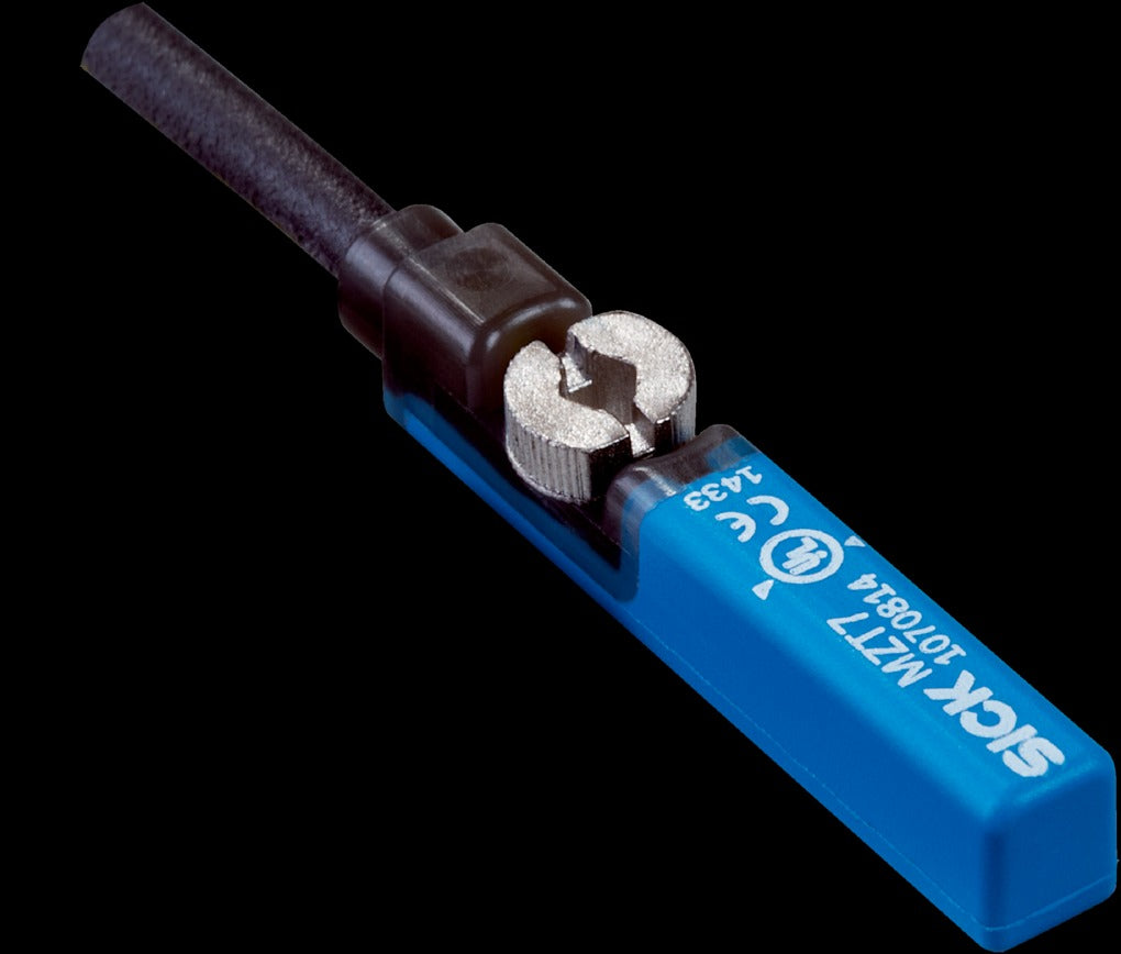The SICK MZT7 cylinder sensor with GMR technology reliably detects the piston position in pneumatic drives. The MZT7 can be mounted directly into all cylinders with standard T-slots. SICK also has an extensive range of adapters which enable the MZT7 to be used with other cylinder types. The MZT7 is characterized by its simple mounting principle: Insert the sensor into the slot and rotate the fixing screw a quarter turn to fix it securely to the cylinder.