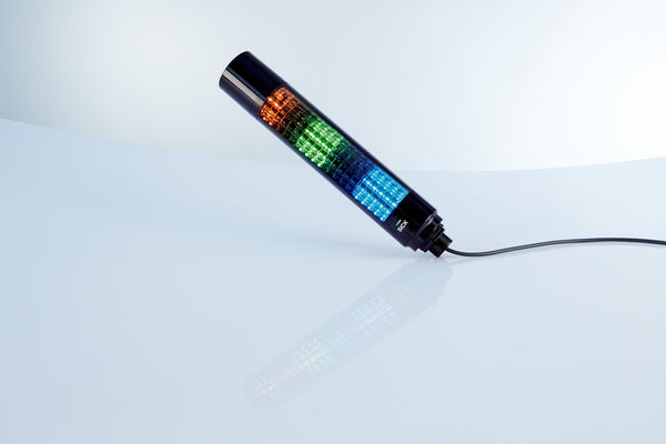 In automated production, signal lamps are used in a wide variety of applications: At individual machines, conveyor belts and workstations, or even in entire systems. Signal lamps visualize operational statuses or alert employees that their help is needed at a system. They indicate critical temperature conditions and set off alarms in case of faults. All these different visualization tasks can be solved with just one lamp thanks to the SLT060 Smart Light Tower. The key is the IO-Link interface.