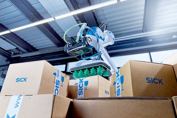 The PALLOC robot guidance system makes it easy to locate boxes of various sizes and appearances with high accuracy. The 3D color camera delivers up to 30 full-frame images per second with sub-millimeter resolution. These 3D and color images ensure that the individual boxes and layers can be detected and measured in an accurate and reproducible way. The camera has a pre-installed and pre-trained deep learning neural network localization algorithm that allows it to locate virtually unlimited variations of boxes. PALLOC reports the position coordinates of the boxes to the robot, allowing it to pick them one-by-one or several at the time, in a configurable picking order.