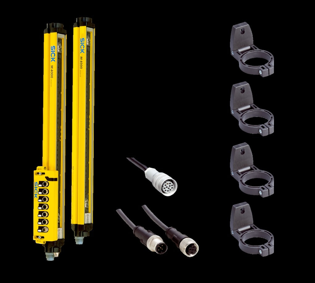 The M4000 Advanced Safety Light-Beam Sensor Base Set (2-beam A/P) with UE403 provides comprehensive safety for industrial automation systems. This set includes a two-beam configuration designed to detect interruptions caused by personnel or objects, triggering an immediate stop of machinery to prevent accidents. The UE403 module enhances the system with additional functionality, ensuring reliable operation. Built for durability and high performance in harsh environments, the M4000 series ensures continuous protection, improving operator safety and reducing risks in critical applications such as production lines and automated systems.