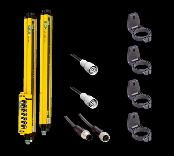 The M4000 Advanced Basic Set 3-Beam + UE403 is a comprehensive safety solution designed to provide reliable protection in industrial settings. This set includes a 3-beam sensor system that effectively detects objects or personnel within its detection range, ensuring the safety of both machinery and workers. The UE403 module enhances the system with additional functionality, offering advanced control and integration capabilities. Together, they form a robust and durable solution ideal for safeguarding automated systems, conveyors, and access points, while meeting stringent industry safety standards.