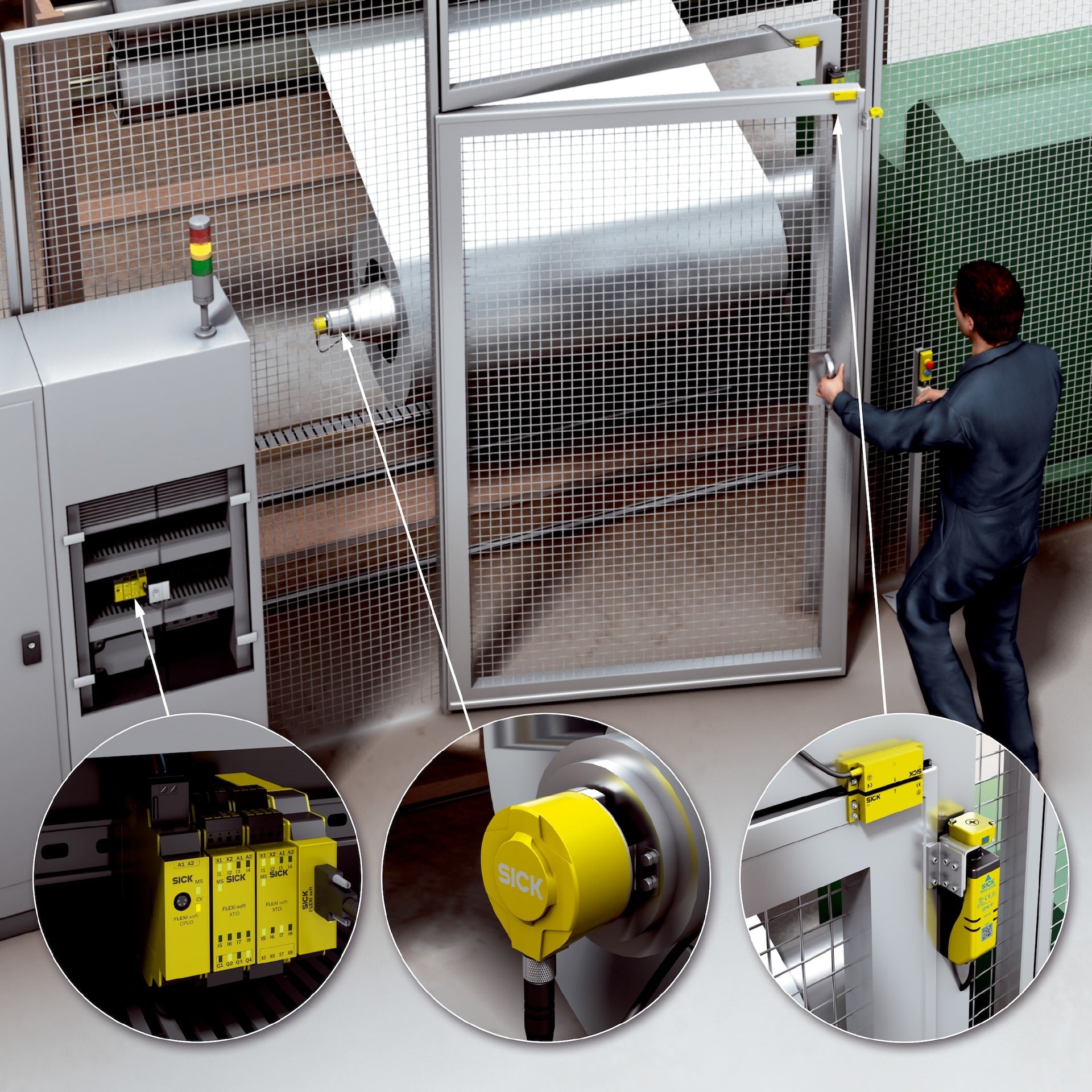Safe Interlocking is the safety locking solution with standstill monitoring – designed for applications with high requirements when it comes to safeguarding processes and people. The safe standstill monitoring function only unlocks the locking device when the system has come to a standstill. Thanks to SOS (safe operating stop), the drive does not need to be disconnected from the power supply. Safe Interlocking saves valuable space and ensures maximum productivity: no unnecessary downtimes, while ensuring safe, cost-effective, and standard-compliant operation of the system. The “safe monitoring of machine speed” function can be used when carrying out maintenance. Proven safety components from SICK increase availability and avoid follow-up costs.