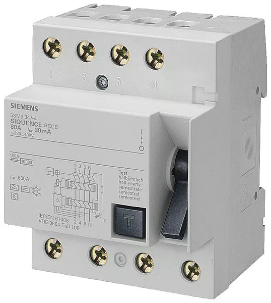 The Siemens 5SV46470RC is an 80A, 4-pole residual current circuit breaker (RCCB) designed for reliable protection in electrical installations. With a 300mA sensitivity and a 4MW rating, it provides protection against earth leakage and ensures safety from potential electrical faults. Ideal for AC type applications, this RCCB helps prevent electrical hazards by quickly disconnecting power in the event of a fault, making it essential for industrial and commercial electrical systems.