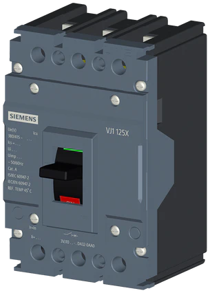 The Siemens Sinova MCCB IEC FS0 125A TM FTFM 3P 18kA 63A (model 3VJ10061DA320AA0) is a high-performance molded case circuit breaker designed for industrial applications. It features a 125A current rating, 18kA breaking capacity, and a 3-pole configuration, ensuring reliable protection against short circuits and overloads. The 63A trip setting allows for customized protection, making it ideal for safeguarding electrical systems and equipment in demanding environments.
