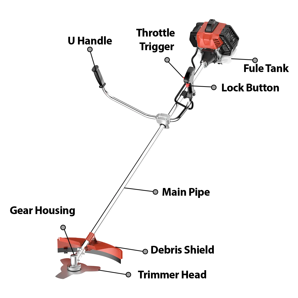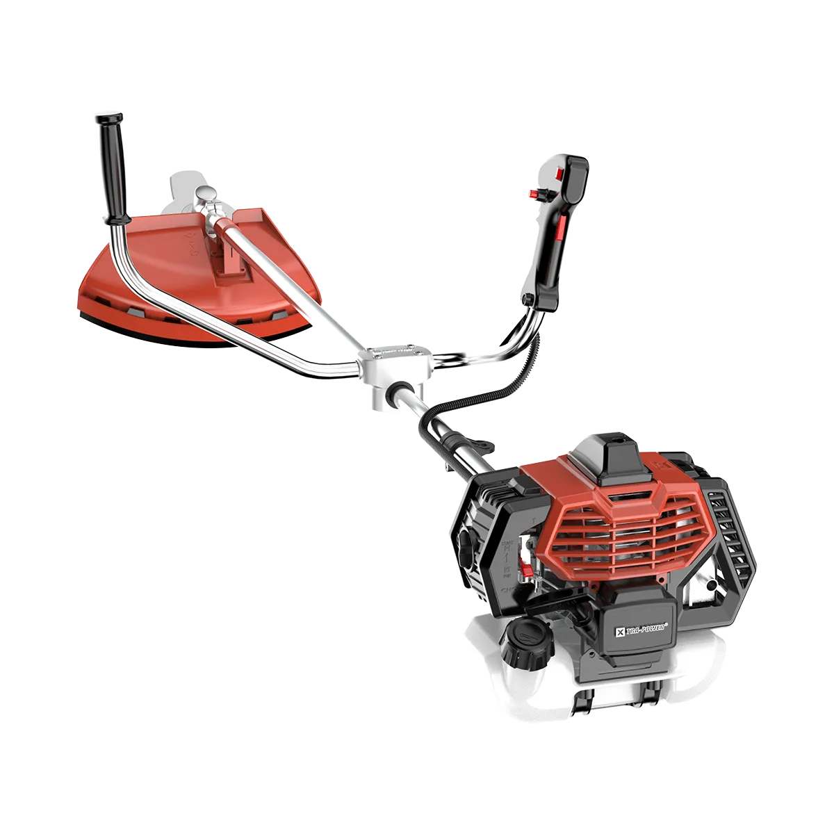 Xtra Power XPT 586 Brush Cutter - a powerhouse designed to tackle the toughest outdoor tasks with ease. Its striking red and black design is powered by a robust 52 CC 2-stroke engine, delivering an impressive 1.6 kW input power that effortlessly cuts through stubborn vegetation. With a mixing ratio of 1:25 for optimal fuel efficiency and a 1.2 L petrol capacity, this tool ensures longer operation on a single tank. The 1500 MM pipe length with a 28 MM diameter guarantees precise trimming and cutting, while the 9500±500 RPM no-load speed and 255 MM disc size ensure swift and efficient performance. Experience comfort and control with its ergonomic design, making it the ideal choice for both professionals and passionate homeowners looking to elevate their outdoor maintenance game.