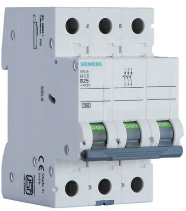 - Siemens 5SL63256RC-25A 3P 3MW 7.5kA TYPE:"B" AC:240/415V 50-60Hz MCB