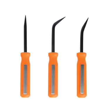 The Groz Pocket Pry Bars are designed for use in automotive, electrical, and general workshop applications, for removing seals, plastic clips, O-rings, interior trim pieces, and plastic caps. Manufactured from high tensile 3/16" diameter alloy steel, these 5”(125mm) long bars are suitable for working in tight spaces and providing leverage in close quarters. The bars come with an ergonomic poly acetate handle for superior comfort and secure grip with a stainless steel pocket clip making it easy to carry them safely. Available as a set of three: A straight prybar, 55° angled prybar that provides a greater range of motion for prying and lifting up components, and a 27°angled prybar, ideal for use in confined spaces.