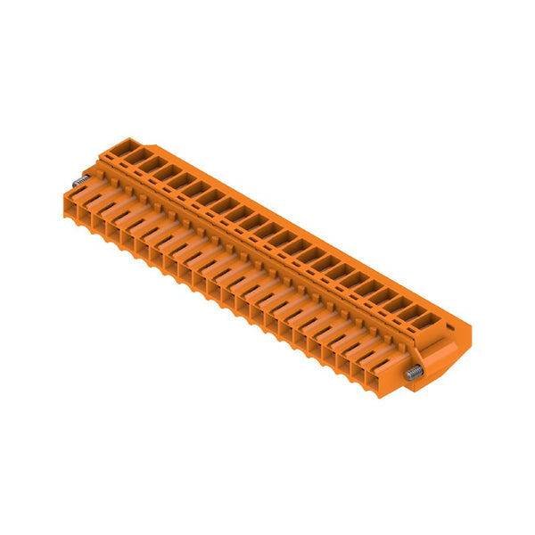 The BL 3.50/22/90F SN OR BX by Weidmueller is a high-quality PCB terminal connector designed for secure and efficient electrical connections. With a 3.50 mm pitch and twenty-two positions, it ensures reliable signal transmission. Its 90-degree orientation, orange color, and durable construction make it perfect for industrial and automation applications, providing long-lasting performance and seamless integration.
