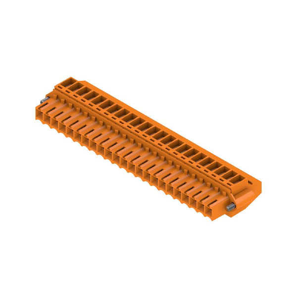 The BL 3.50/23/90F SN OR BX by Weidmueller is a reliable and durable PCB terminal connector designed for secure electrical connections. Featuring a 3.50 mm pitch and twenty-three positions, it ensures stable and efficient signal transmission. Its 90-degree orientation, orange color, and robust design make it ideal for industrial and automation applications, offering long-term performance and seamless system integration.