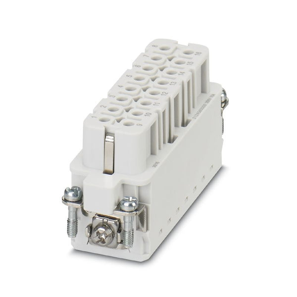 The HDC HA 16 FP is a heavy-duty industrial connector designed for reliable signal and power transmission. The "16" refers to the number of contacts, and "FP" indicates a specific contact configuration. Built to withstand harsh industrial environments, it ensures secure, high-performance connectivity in automation, control systems, and other demanding applications. This connector provides durability and stability in rugged conditions where secure connections are critical.