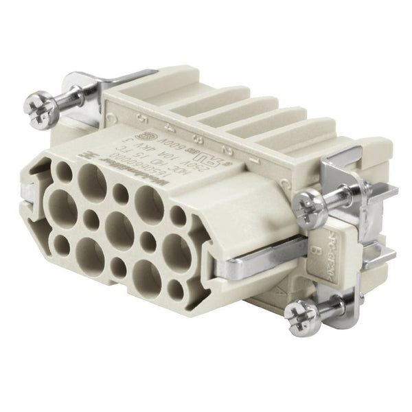 The HDC HD 15 FC is a heavy-duty connector designed for industrial and commercial use, featuring a 15-pole configuration. Its compact and rugged design ensures reliable performance in harsh environments. The FC series offers a secure connection, providing excellent protection against mechanical stress, vibration, and environmental factors, making it ideal for high-demand applications.