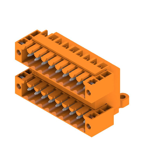 The SLD 3.50/18/90F 3.2SN OR BX by Weidmüller is a high-quality PCB terminal connector designed for secure and stable electrical connections. It features a 3.50 mm pitch, eighteen positions, and a 90-degree orientation with a female configuration (90F), ensuring reliable signal transmission. The "OR" designation indicates an orange housing, making it ideal for use in industrial automation, control systems, and various PCB applications, offering durability and long-lasting performance.