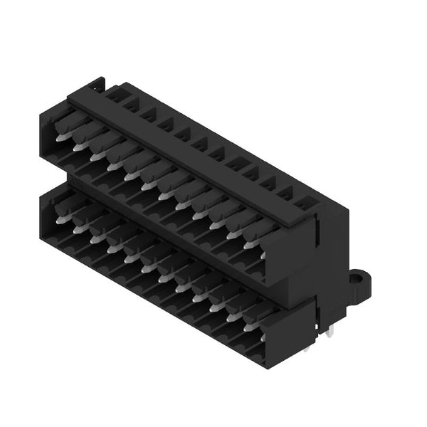 The SLD 3.50/26/90G 3.2SN BK BX by Weidmüller is a durable PCB terminal connector designed for secure and reliable electrical connections. It features a 3.50 mm pitch, twenty-six positions, and a 90-degree orientation with grounding (90G), ensuring stable signal transmission. The "BK" designation indicates a black housing, making it suitable for industrial automation, control systems, and various PCB applications, offering long-lasting performance and reliability.