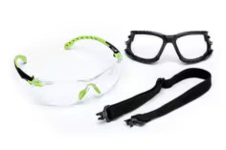 The 3M™ Solus™ 1000 Series Kit includes a pair of Green and Black Solus safety glasses featuring clear lenses with Scotchgard™ Anti-fog coating, an optional elastic strap, and a removable foam gasket. 3M™ Scotchgard™ Anti-Fog Technology brings higher anti-fog performance* to safety eyewear, helping workers see more clearly to complete on-the-job tasks. The elastic strap and removable foam gasket are optional accessories that may be attached or removed from the eyewear depending on the preferences of the person wearing the glasses. The strap fits comfortably around the backside of the head to help keep the glasses securely in place when being worn. The removable foam gasket is also included to help reduce eye exposure. Small vents in the foam gasket help reduce fogging.