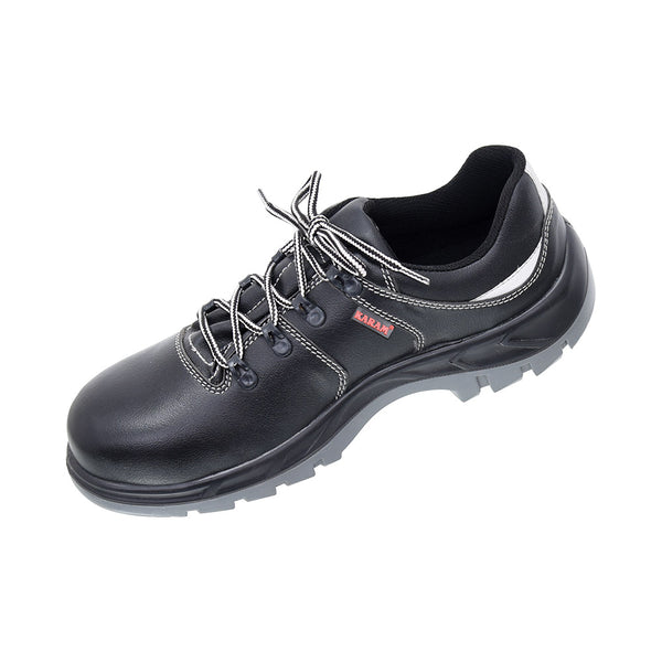- Safety footwear type ABAWRF in micro fiber din leather with a protective composite toe and soft grey lining. The safety shoe is a water repellent derby style low ankle protection shoe with a double density PU sole.