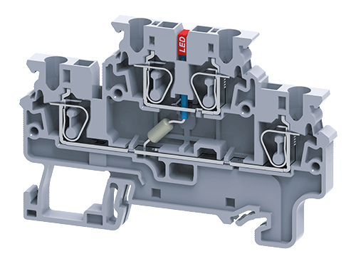 - Connectwell 2.5 sq.mm Double Level Terminal Blocks with LED indication -LD1 Configuration