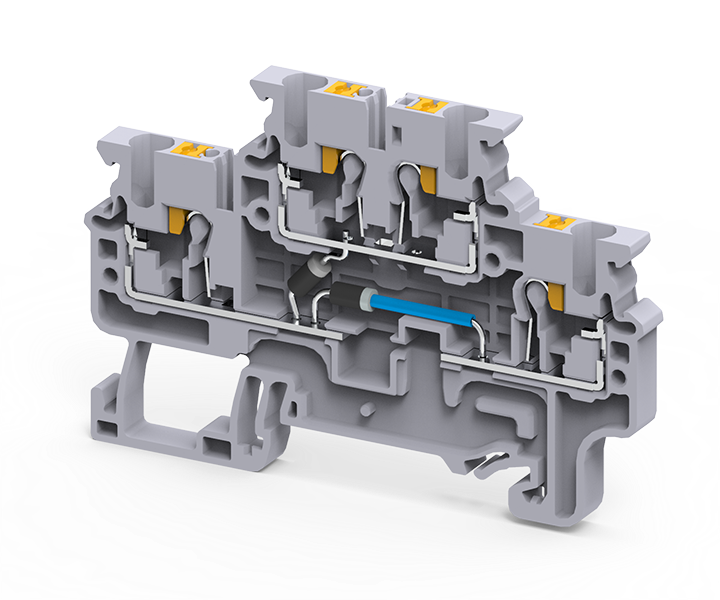 Double Level Terminal Block are available with arc suppression circuits for contractors and solenoid valves-D.C