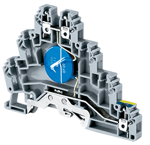 | These Terminal Blocks are designed to protect a single line against a longitudinal (line/earth) surge, thereby protecting distribution and input. |