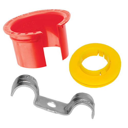 For use with armored cable or metal-clad cable. Steel clamps are available in single and duplex versions. Anti-short bushings protect the sheathing on conductors from sharp edges. Metal stud grommets snap into metal studs to protect wire insulation from sharp edges of metal studs, providing 360° protection.