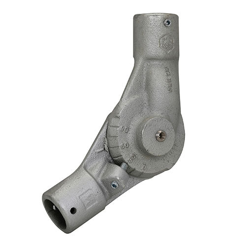 UNR explosionproof adjustable fixture hangers are used in hazardous areas to mount between a fixture and its outlet box so that the light fixture can be adjusted within the range of 0° to 90°. UNRs permit hazardous area pendant mount fixtures to illuminate vertical surfaces such as a control board. They also allow fixtures to hang plumb when the supporting outlet box is not horizontal.