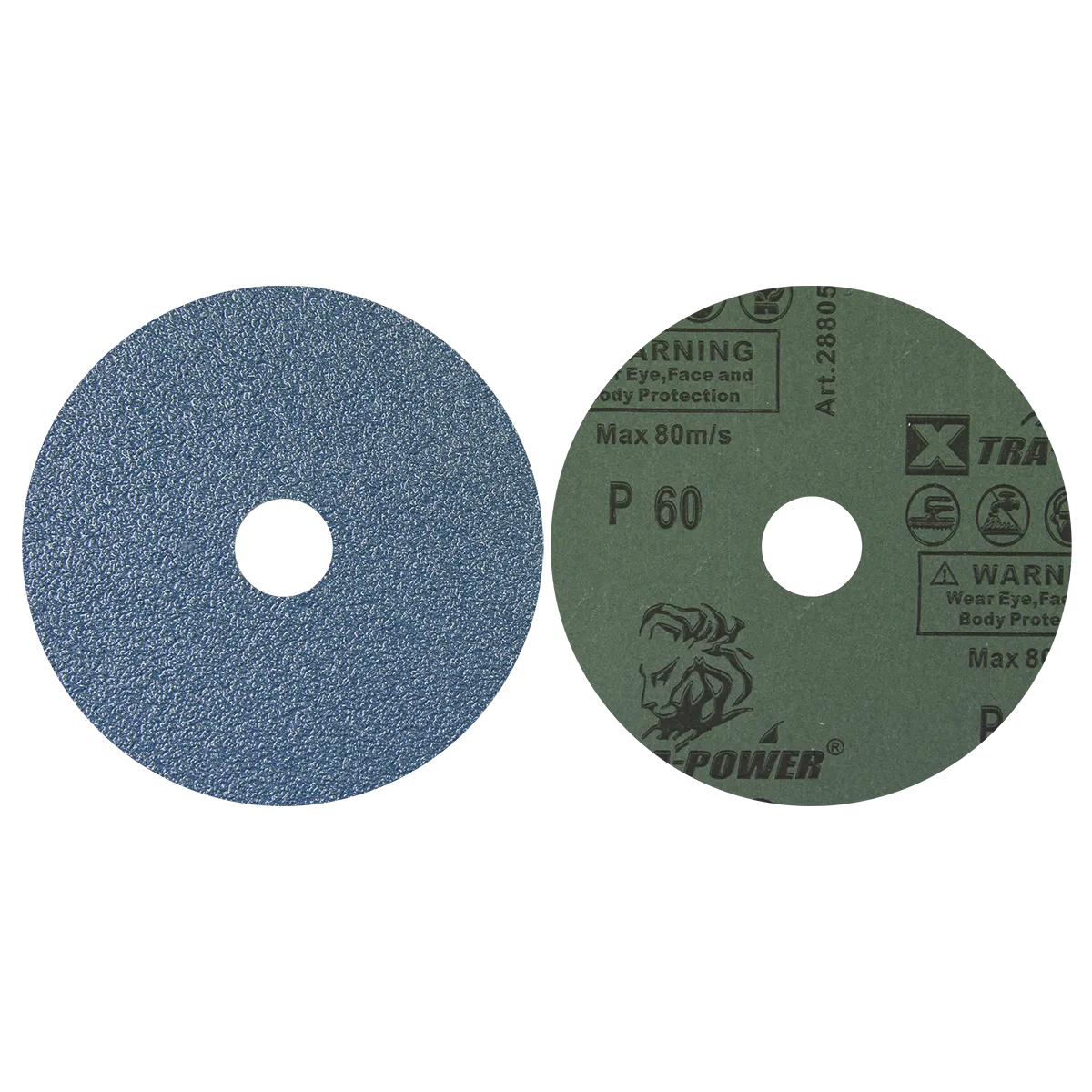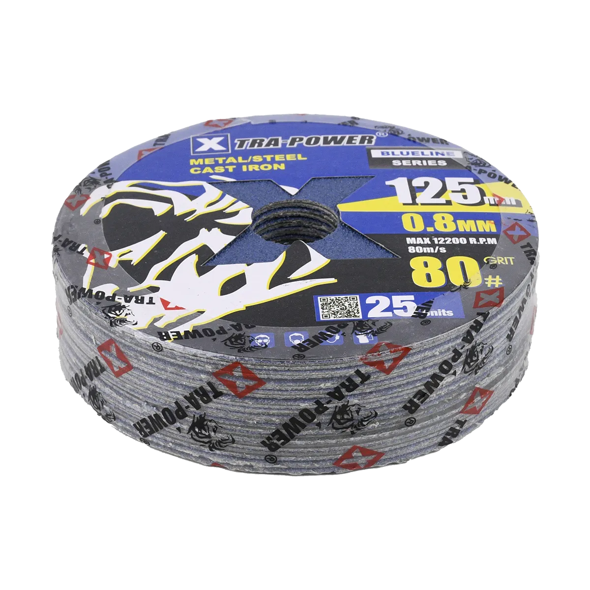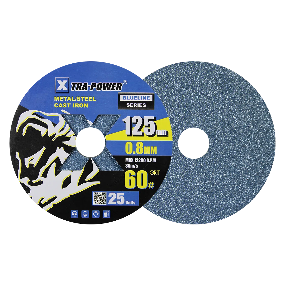 The Xtra Power Fiber Disc 125MM 0.8MM Blueline Series is a high-quality abrasive tool designed for efficient and precise metalworking tasks. This product is notable for its durability and reliability, making it a suitable choice for demanding applications. It's engineered using premium materials, ensuring high endurance and dynamic speed performance. Key features of this fiber disc include: It is available in multiple grit sizes allowing users to select the appropriate coarseness for their specific task. The disc has a diameter of 125mm and a thickness of 0.8mm, which provides a good balance between surface coverage and precise control. Made of fiber material, this disc is designed for optimal performance in metal fabrication, including the removal of flesh from welds. It's mostly used for machining metal, ideal for tasks that require high-speed operation and precise results.