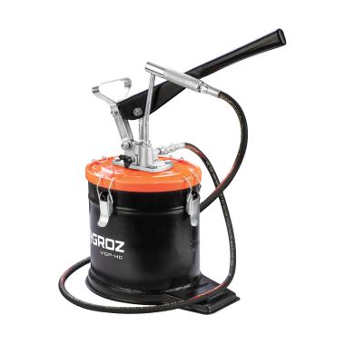 The Groz Heavy-Duty Hand Grease Pump is engineered to survive the harshest environments, offering reliable performance and durability. Ideal for heavy-duty applications requiring substantial grease volumes at high pressures, the Groz VGP-HD ensures quick and effortless greasing. Specifically designed for everyday lubrication of excavators and other earthmoving equipment with multiple greasing points, this pump offers versatility and efficiency. With its variable handle settings, users can switch between high volume setting (Upto 9gm/ stroke) to high-pressure setting (Upto 4000 PSI (275 Bar)). The grease pump works well with NLGI 1, 2, and 3 greases, making it suitable for different viscosity requirements.The pump features an unbreakable footrest, built to withstand heavy use. Available in 6 kg and 10 kg bucket capacities, it meets diverse lubrication needs with ease.