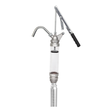 The Groz Clear Tube Lever Action Oil Pump is a revolutionary pump designed for convenient usage, even on drums placed in inaccessible corners. Featuring a unique lever action operation, this pump provides maximum convenience while dispensing fluids. The clear tub polycarbonate pump body provides visibility to remaining oil and lubricants. The heavy-duty aluminium die-cast pump head with 1-1/2” & 2" bung for use on drums with either openings, while the brass piston rings provide increased life. 100% serviceability with no riveted parts, and a "built-in" nozzle holder for convenient storage of discharge hose, make this pump a must-have for any professional. The tool comes complete with a telescopic suction tube for 205 litres (55-gallon) drums, a 1.8m PVC Nitrile delivery hose with a metal nozzle spring and a hose clamp. This pump is recommended for use with oil based fluids, solvents, acids, antifreeze, gasoline etc.