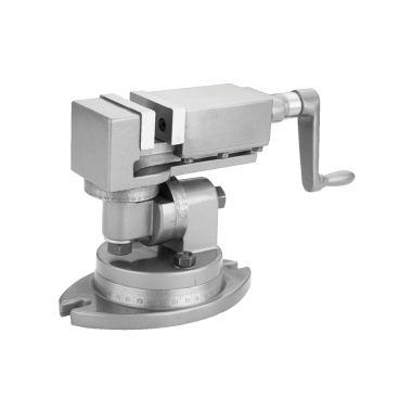 The Groz Super Precision Universal Vice allows the workpiece to be set at any desired angle. With low-height construction, it is useful for complicated grinding jobs. The vice features a fixed horizontal axis that allows the workpiece to be rotated at any angle and a fully graduated 360° swivel base for complete rotation on the vertical axis. The third angular slide with a moving axis allows for any setting in the 3D plane.