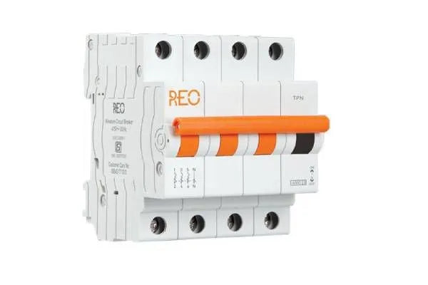 32 A TPN C MCB is a three-pole, neutral bar-connected miniature circuit breaker designed for three-phase systems. The C curve trips at 5-10 times the rated current, making it suitable for moderate inrush currents from motors or machinery. It provides reliable protection against overloads and short circuits in industrial and commercial applications.