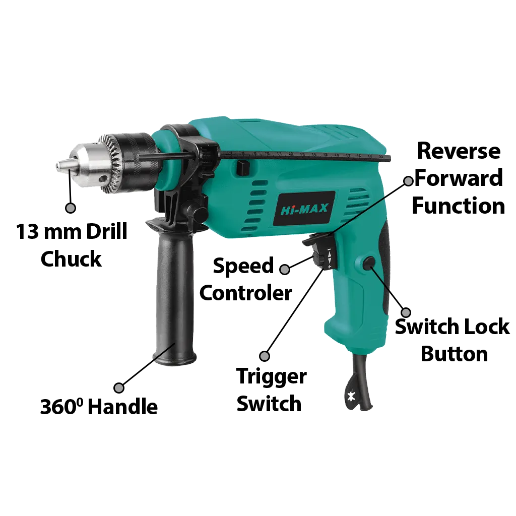 Looking for a skillful and substantial drill machine? HI-MAX IC-083 has a drill size of 1.5-13 mm with movable drill profundity is the ideal decision. It is an instrument that can be utilized to fulfill drilling needs. A convincing motor of 550 watts plays out all errands productively. This effect drills capacities at 2800 RPM for smooth and staggering outcomes. The effect drill is ideal for drilling in various materials.