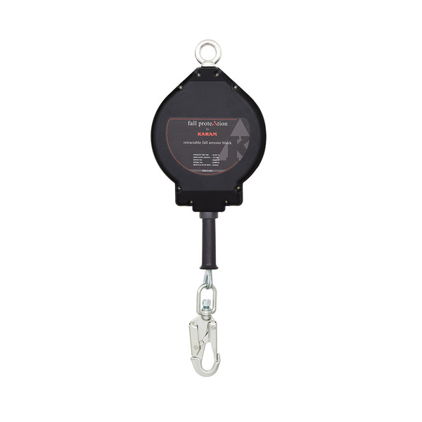 - The anchorage eye comes with a swivel action, preventing any undue twisting of the retracted lanyard (rope or webbing) while working, or in the event of the fall.