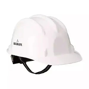 The helmet's classic white color not only delivers a clean, professional appearance but also enhances visibility in various work settings. Ideal for use on construction sites, in manufacturing facilities, and other industrial applications, the Karam PN521 Series helmet combines essential safety features with practical adjustability. Equip yourself with this reliable safety helmet to ensure effective head protection and adherence to workplace safety standards.