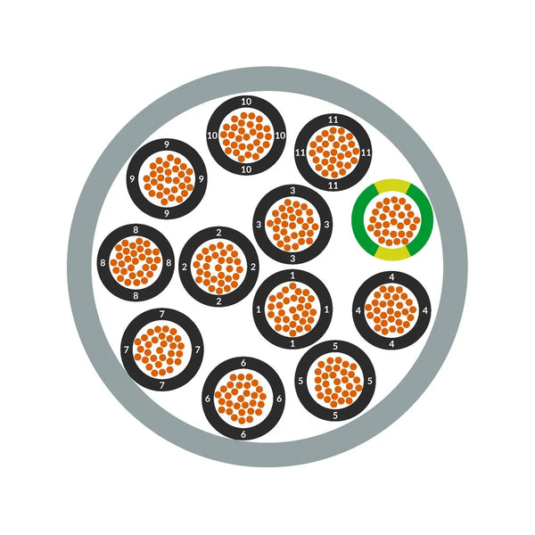 The "H05VV5-F 4G1" cable is a flexible, multi-core power cable designed for low-voltage applications. It consists of 4 conductors, each with a 1 mm² cross-sectional area, making it suitable for power transmission in various residential and commercial applications. The cable features PVC insulation and a PVC outer sheath, providing excellent flexibility, electrical insulation, and resistance to mechanical wear. Ideal for use in indoor environments, it is commonly used for wiring in appliances, lighting systems, and control circuits.