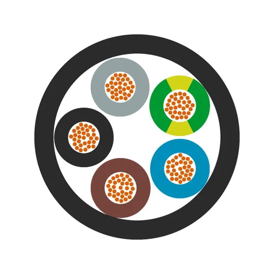 ÖLFLEX® ROBUST 200 5G4 is a highly durable and flexible power cable designed for industrial and outdoor use in harsh environments. It features five cores, each with a conductor cross-section of 4mm², and is built to offer excellent resistance to mechanical stress, oils, chemicals, and weather conditions. This makes it suitable for use in machinery, control systems, automation, and construction sites. The robust construction ensures long-lasting performance, making it ideal for both static and dynamic applications. The ÖLFLEX® ROBUST 200 5G4 provides reliable power transmission in demanding conditions, with a focus on flexibility, durability, and protection.