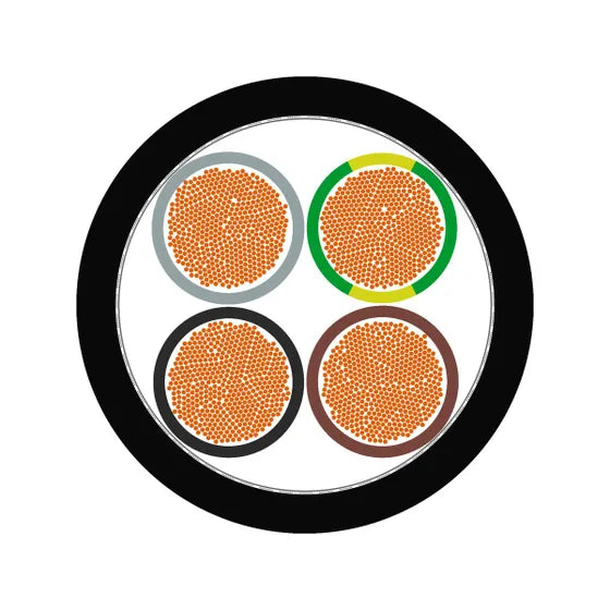 The ÖLFLEX® SERVO 2YSLCY-JB BK 4G150 is a high-performance, flexible servo cable designed for industrial automation and high-power transmission applications. It features four 150 AWG (approximately 70 mm²) conductors, making it suitable for high-power systems. The cable is built with a robust PVC jacket that offers protection against mechanical stress, abrasion, and environmental factors. Its shielded construction ensures excellent resistance to electromagnetic interference (EMI), making it ideal for noise-sensitive environments. The "BK" indicates the black color of the cable, which is commonly used in robotics, large automation systems, and high-demand industrial machinery.